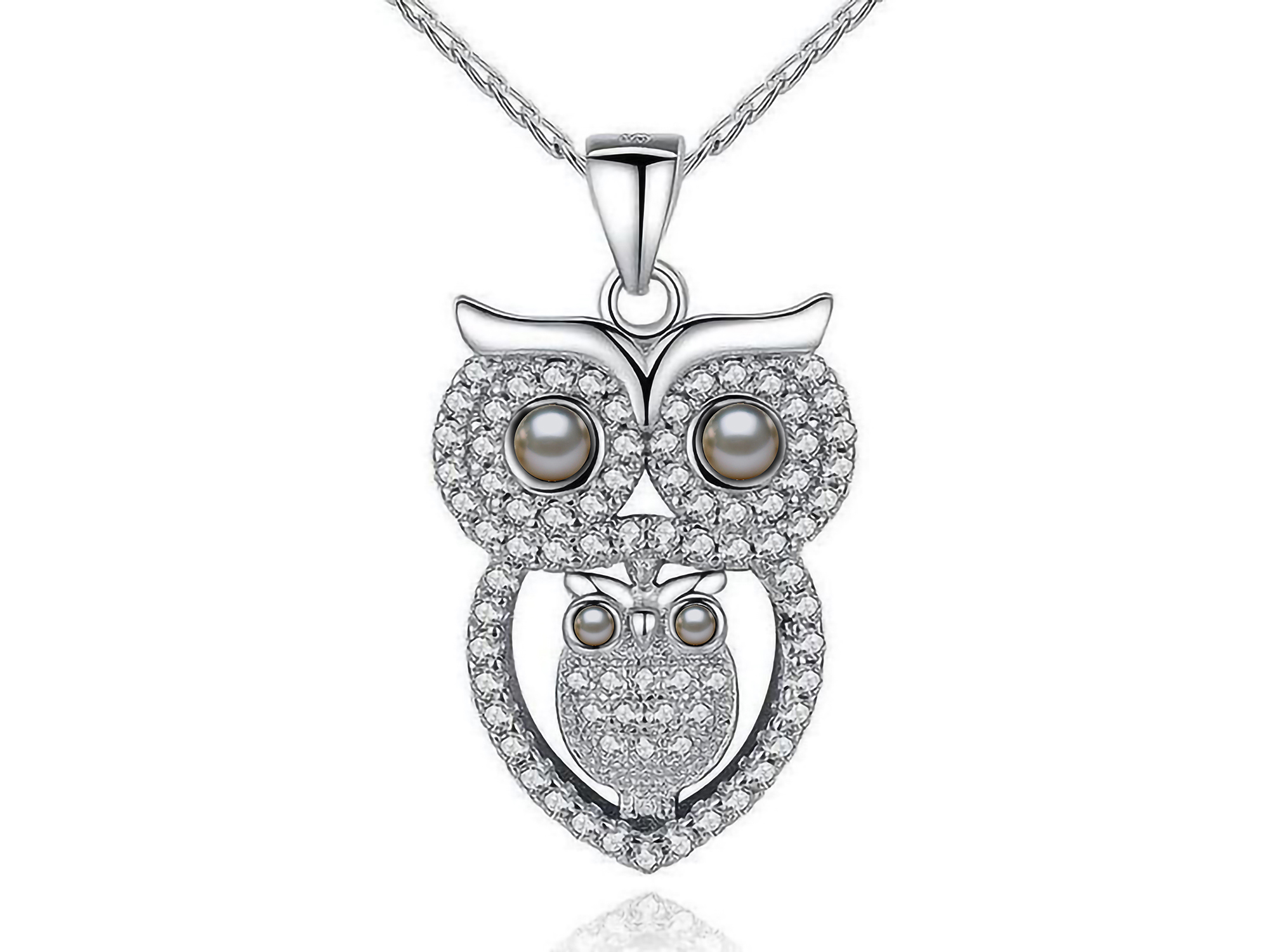 18kt White Gold Owl Pendant Made With Pearls And Diamonds
